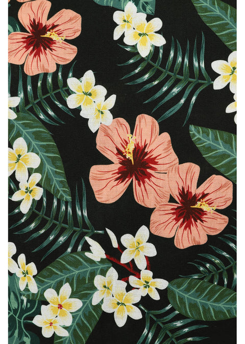 Don't those beautiful flowers and leaves instantly evoke a holiday vibe? Share the joy by pairing it with your favorite tops and dresses for a summery, elegant yet functional look. Its soft cotton makes it easy to wear, thanks to the stretch, and with its short length and short sleeves, you'll stay perfectly comfortable all summer long!