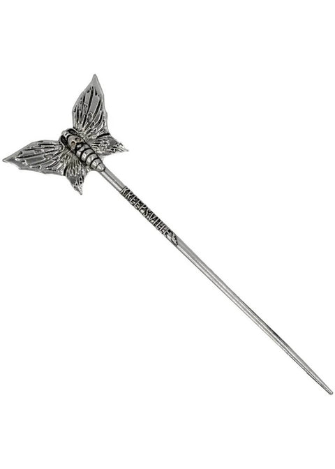 Hopeanvärinen hiuspuikko, jossa yökkösen yksityiskohtainen koriste.