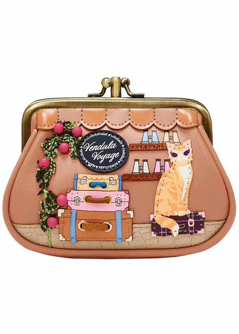 Tämä glamour-kissa on lähtövalmis: aika Voyageen! Kiss-lock-kiinnitteinen klipsilompakko on katseenvangitsija ja valmis suojaamaan rahojasi seuraavalla seikkailullasi ♥